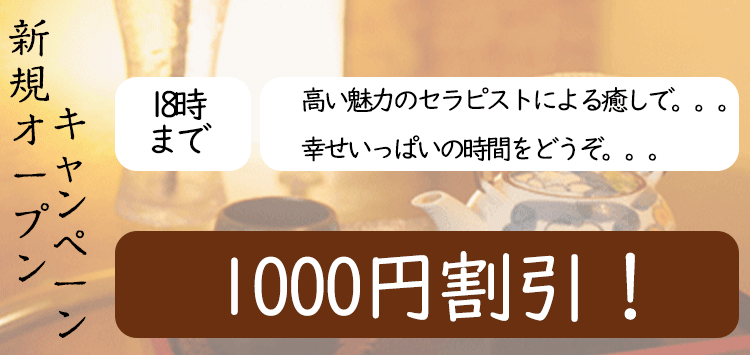 当店では、アロマオイルの効能と当店自慢のセラピストによるリンパマッサージの相乗効果による、癒しのひとときをお客様お一人お一人にお届けしております、自然で心やすらぐ優美な香りを、施術中はもちろんご帰宅お休みになってから翌日朝目覚めでまで楽しんで頂けます、どうぞゆっくりご堪能ください。
